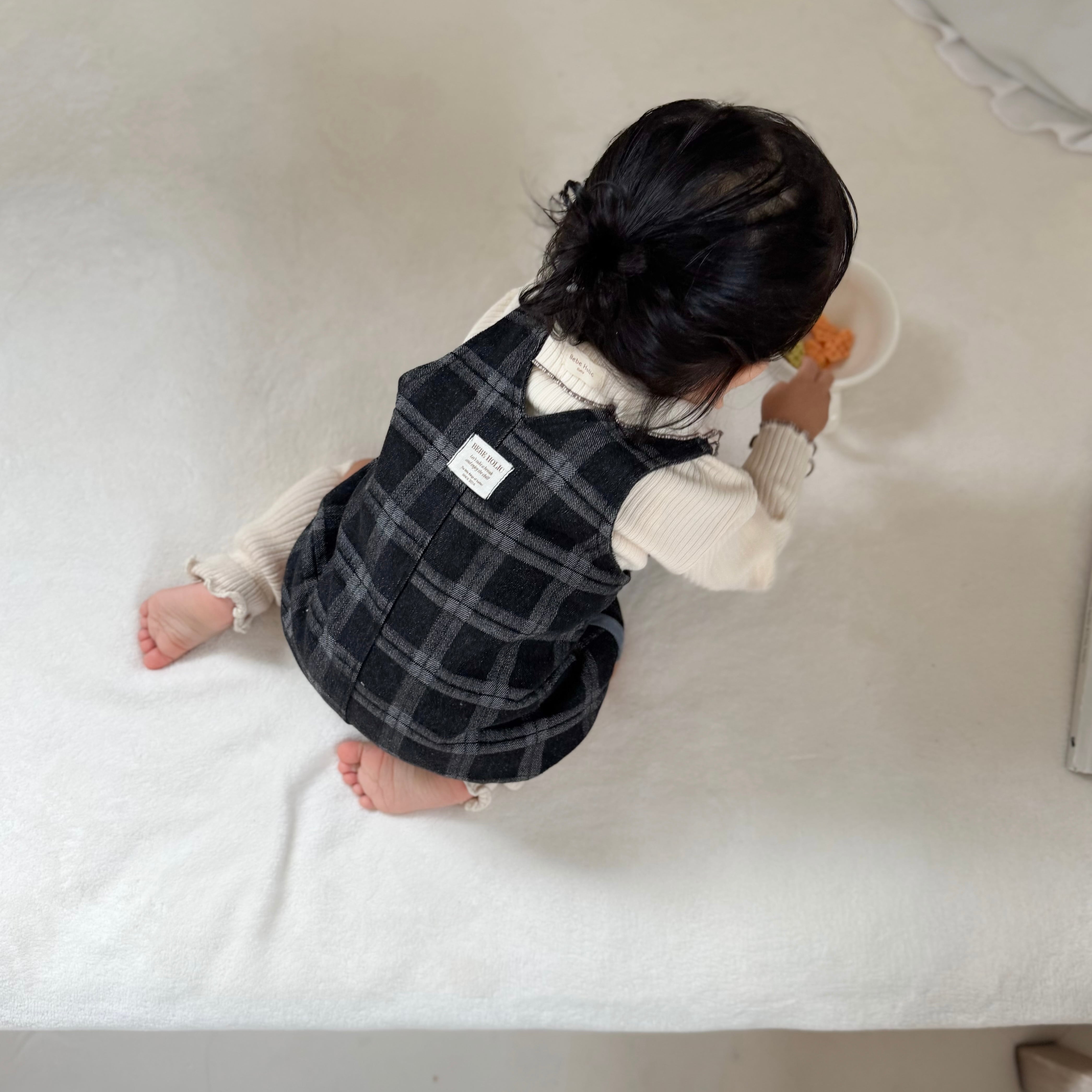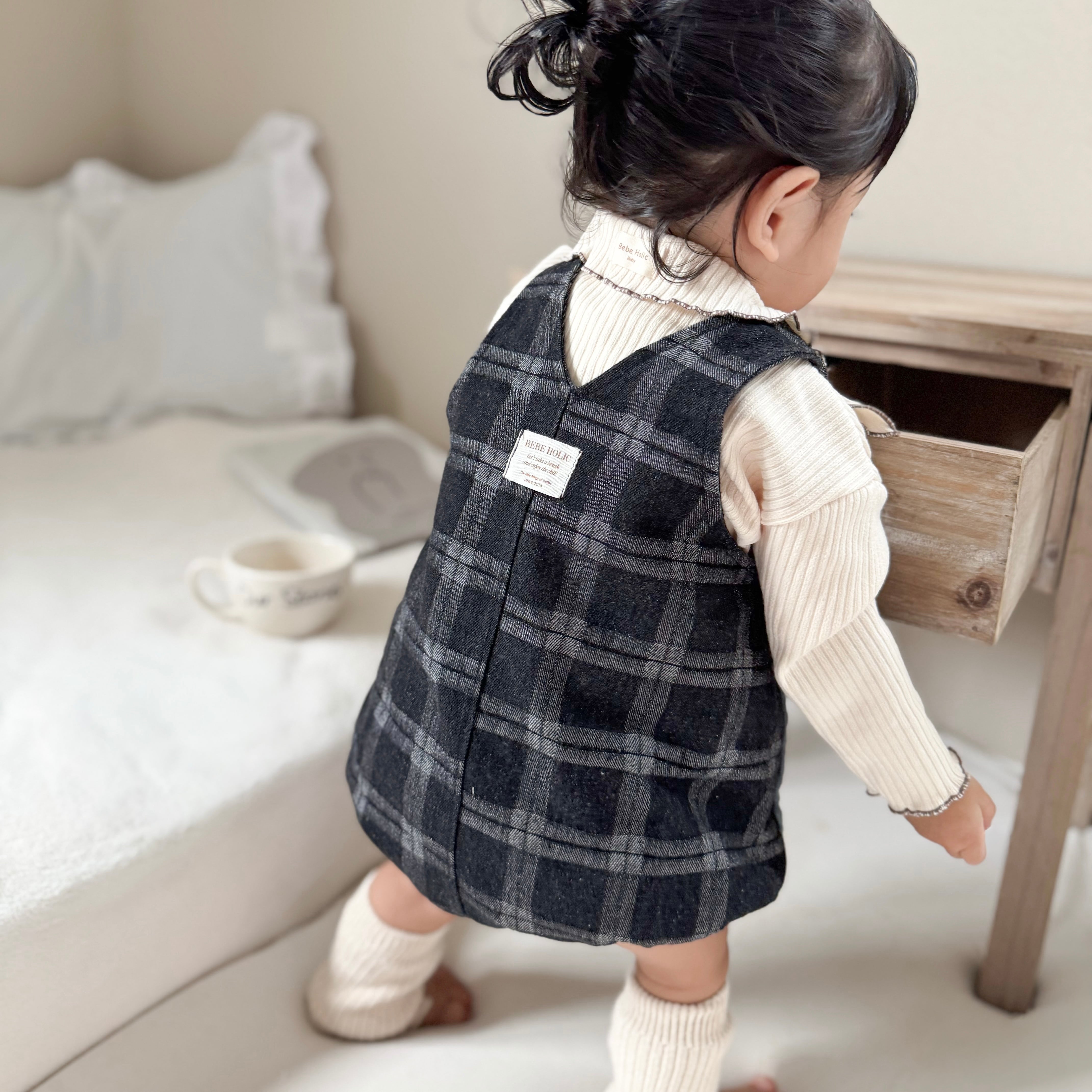 即納 bebe holic.blue check suspender suit[70・80]