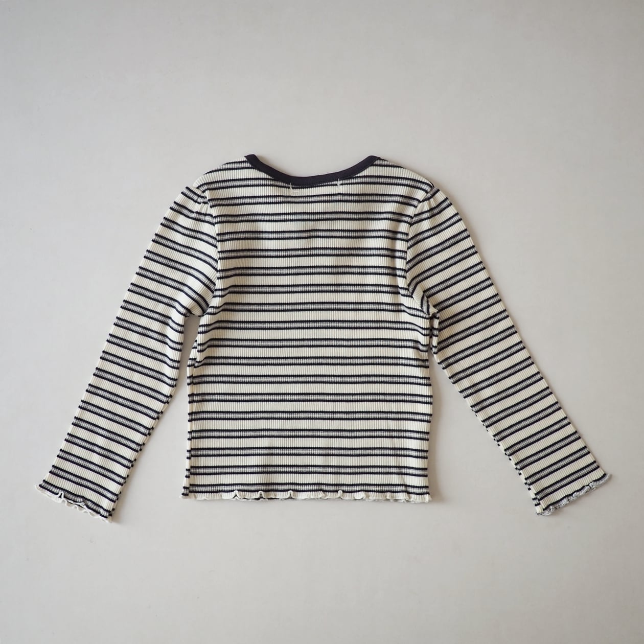 お洒落なボーダーリブトップス。