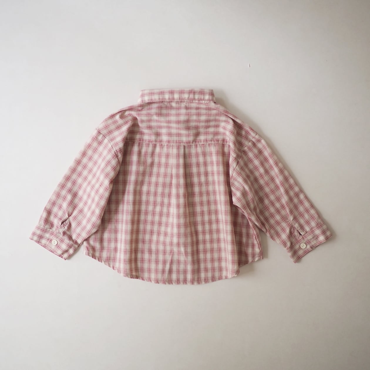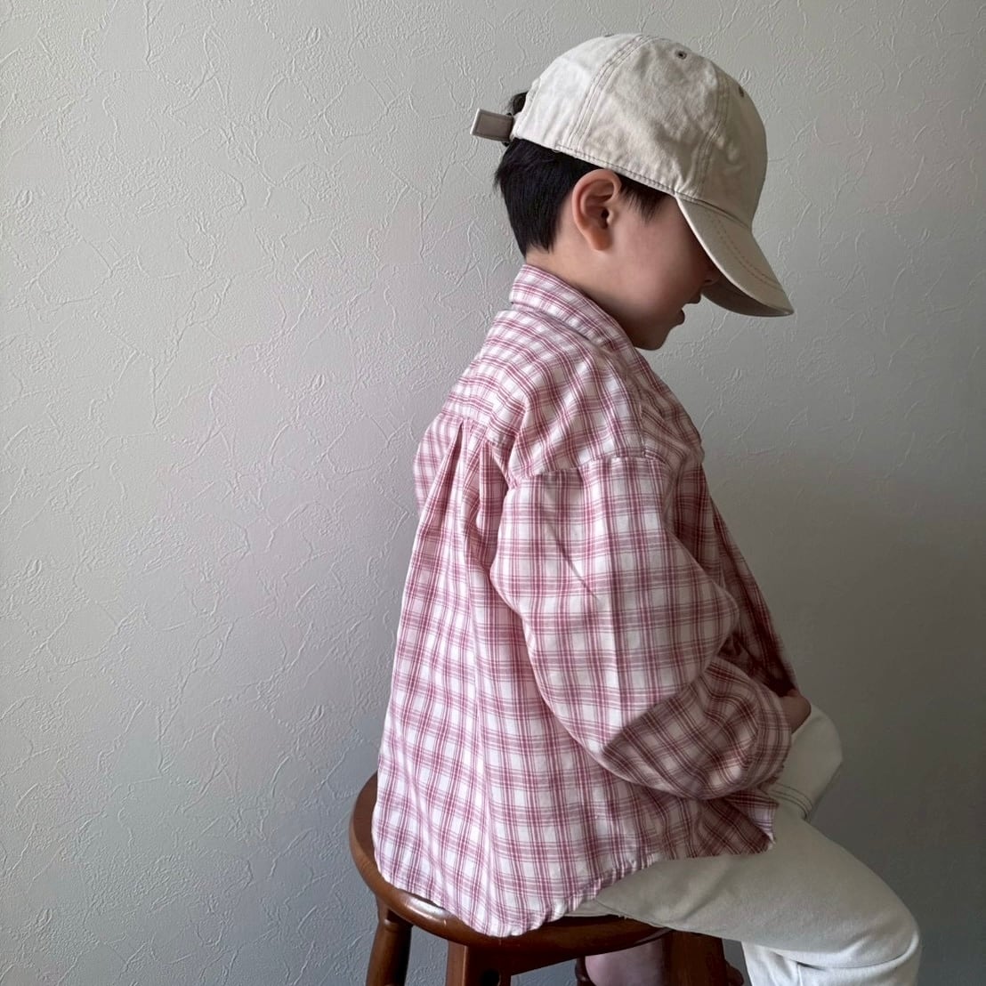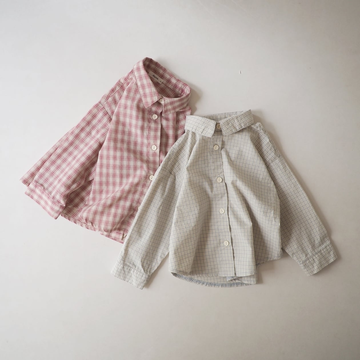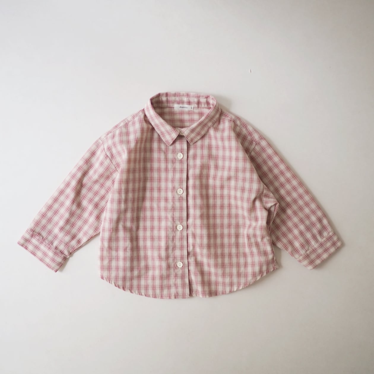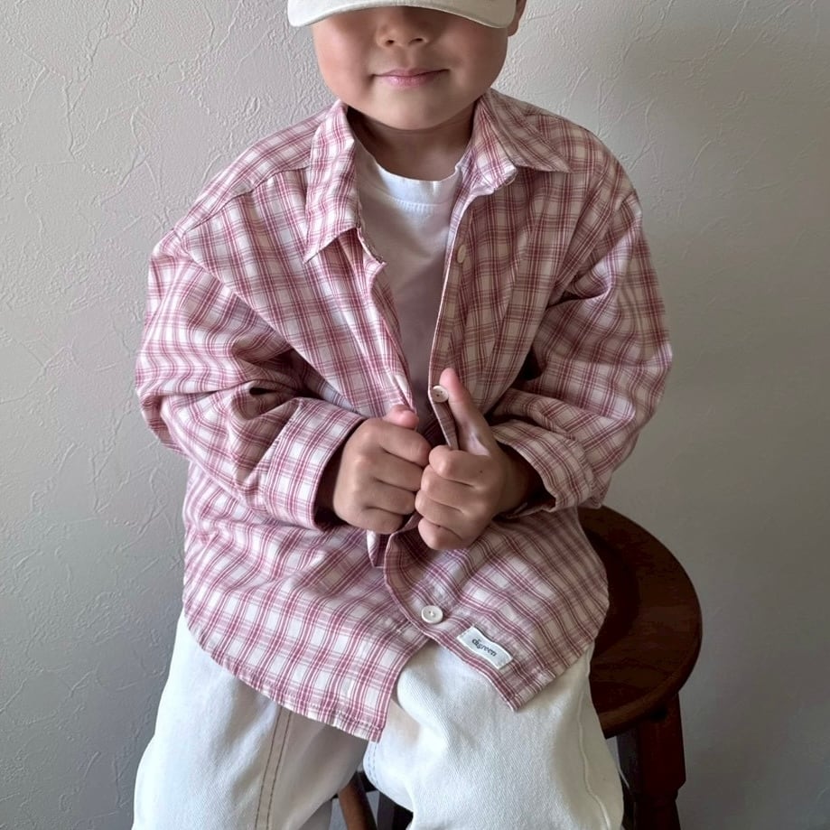 可愛い春カラーのチェックシャツ。