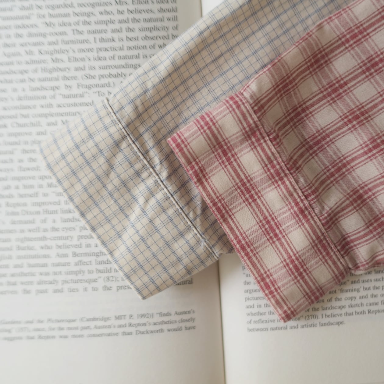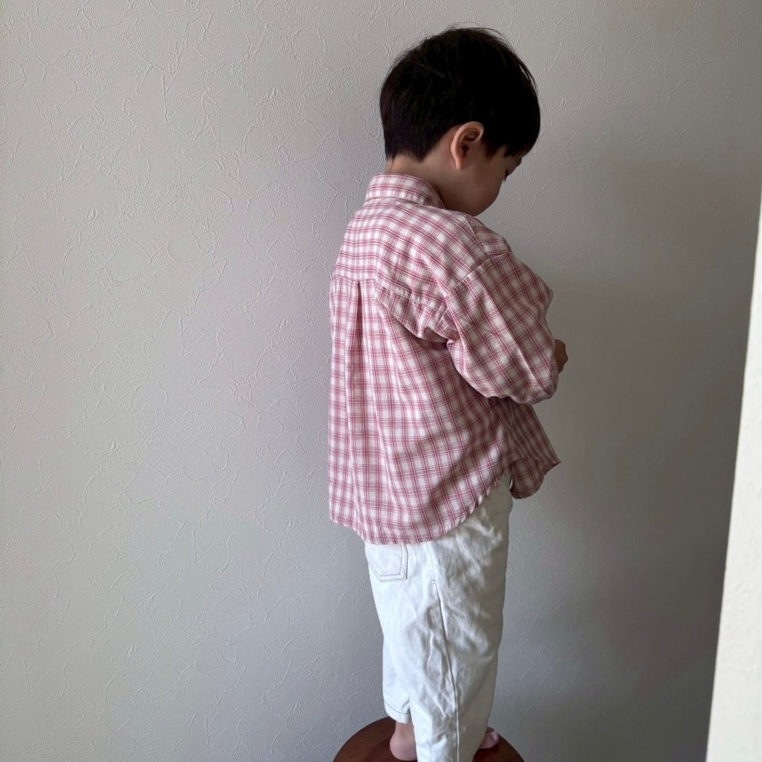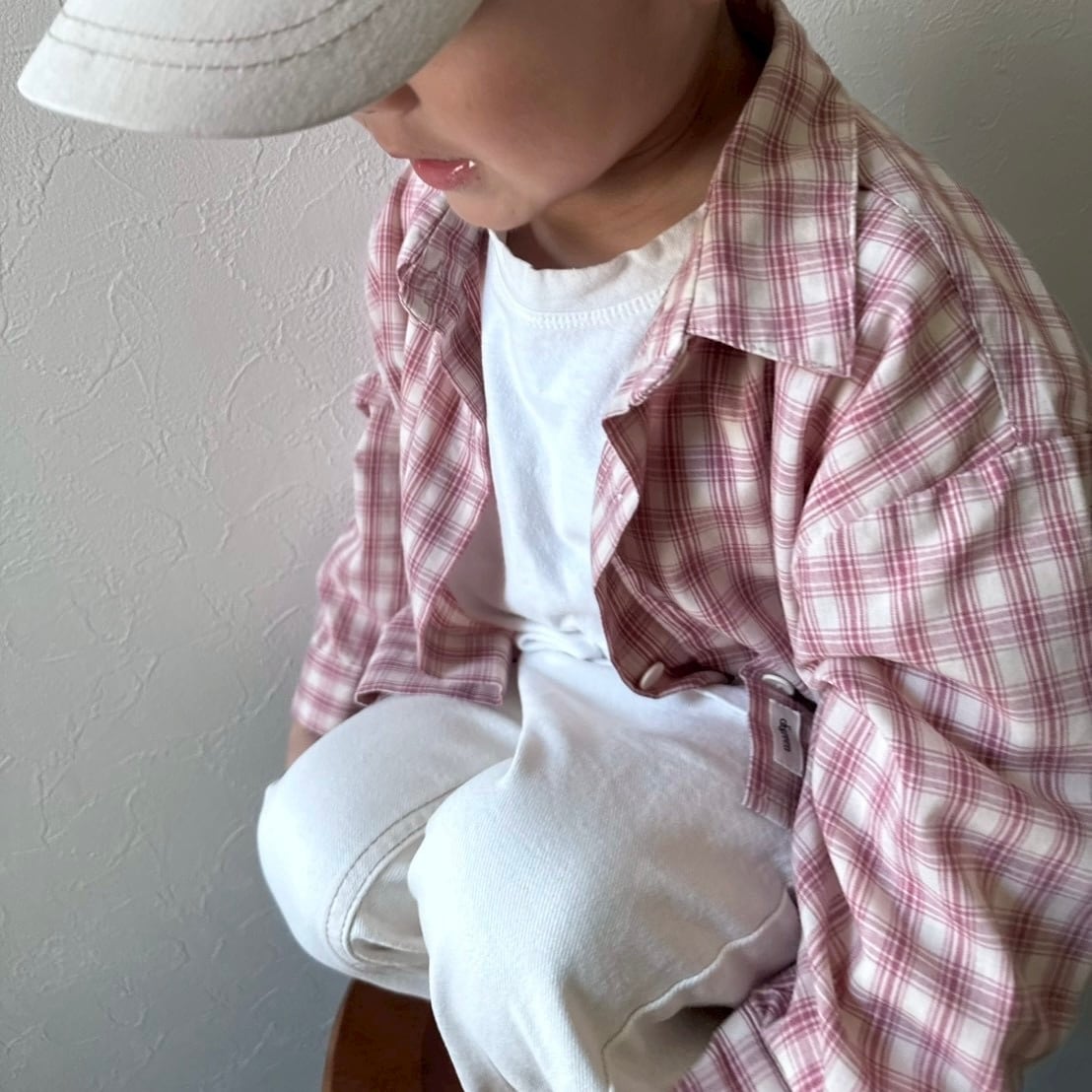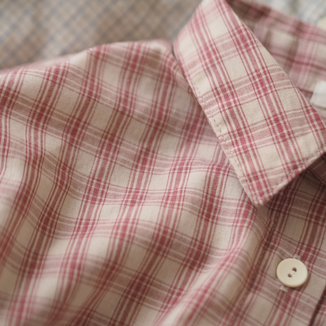 可愛い春カラーのチェックシャツ。